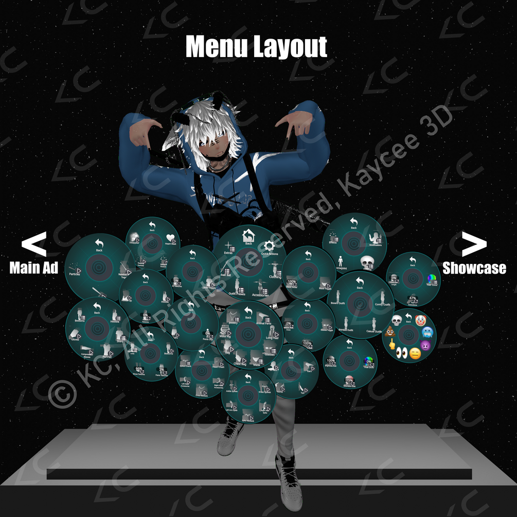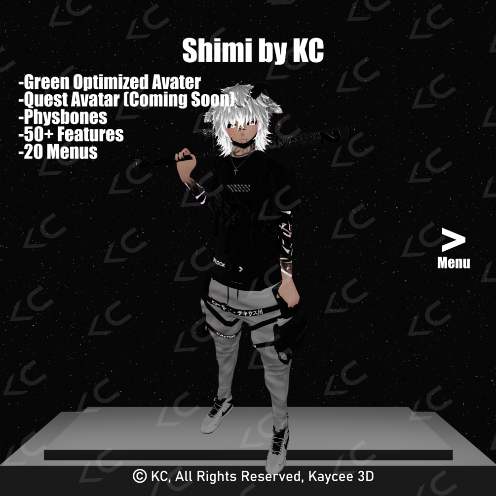 All my assets that were used on this avatar are located on my Gumroad or my Discord. (If you can't find one or more of my products on my Gumroad or in my Discord then that means this asset(s) has not been released yet. For more information feel free to message me on Discord at KC#5344 or email me at kaycee3d.info@gmail.com)